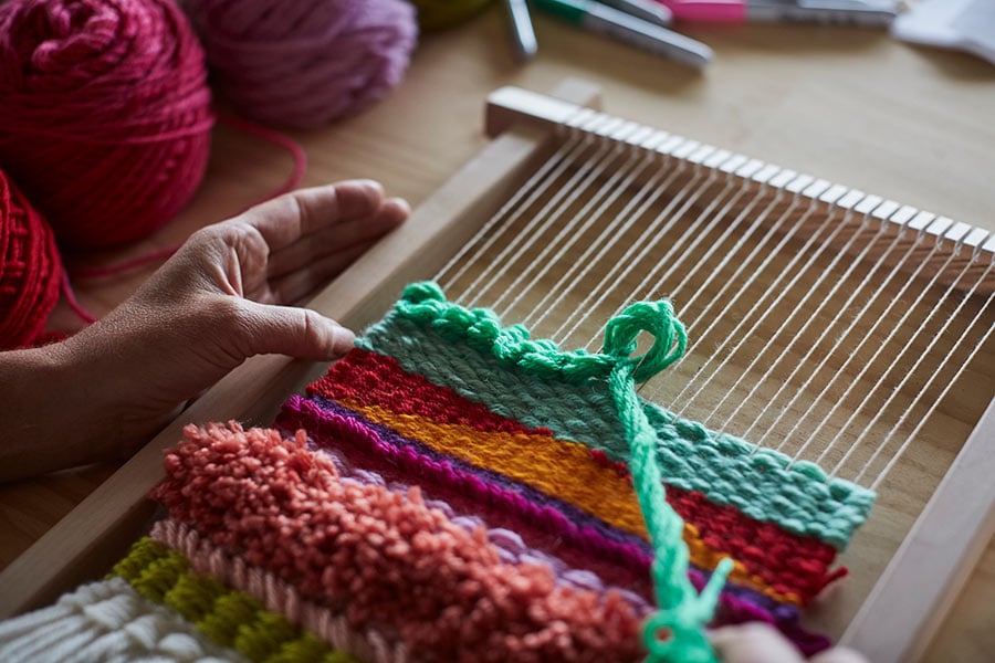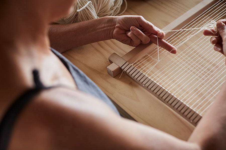 Warping the loom is when you wrap the warp around the loom. If you are using a ready-made loom you wrap the warp or refer to the manufacturer’s instructions.